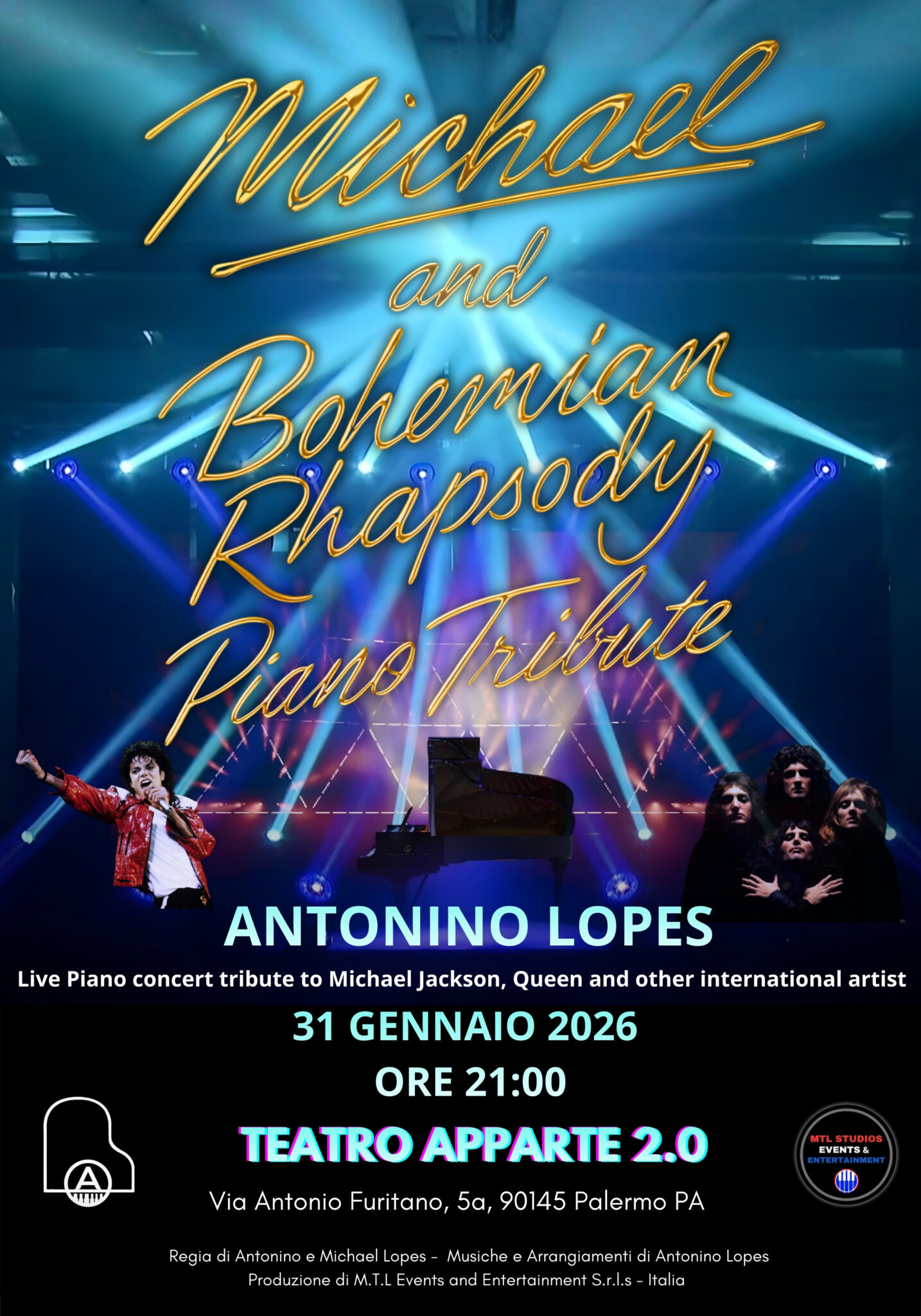 Antonino Lopes is a highly talented and versatile Italian pianist, known for his live performances and interpretations of iconic songs by artists such as Michael Jackson, Queen and Coldplay, Toto, Adel and many others. Born and raised in Italy, he developed his passion for music from a young age, dedicating himself to studying piano and composing music